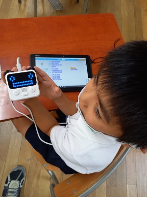 プログラミングロボット「コーディ」の表情を変えるための、アップロードの仕方を学びました。