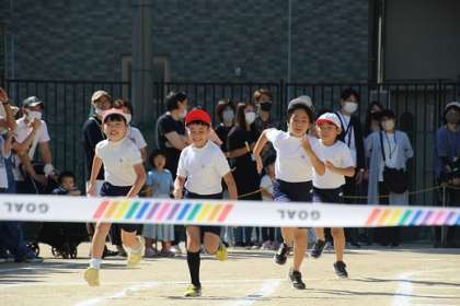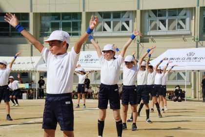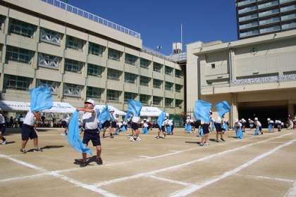 3・4年生の個人走「ラン ラン RUN」と団体演技「KOZU BLUE」の様子です。