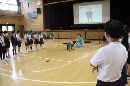 3年生が、聴導犬出前授業を受けました。クイズ形式でお話を進めていただき、聴導犬について楽しく考えながら学習することができました。