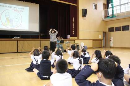補助犬には、目に障がいがある人のお手伝いをする盲導犬、手や足に障がいがある人のお手伝いをする介助犬、耳に障がいがある人のお手伝いをする聴導犬がいることも手話と歌で学びました。