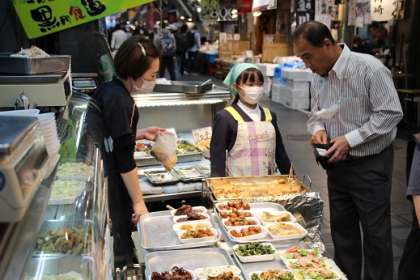 ハンバーグ、おでん、サラダなど出来たてのお惣菜がたくさん並んでいました。お客さんとたくさんお話をして、おすすめを伝えることを大切にされているそうです。商品をお客さんに渡したり、お会計をしたりと大忙しでした!