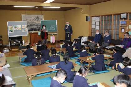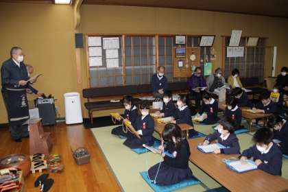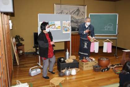 1月25日(水)3年生は、豊寿会のみなさまに「昔のくらし」について教えていただき、子どもたちが考えた質問にも、くわしく答えていただきました。昔の電話や火鉢、吊り下げ式の手洗い器などに触れる機会もいただき、楽しく学習することができました。