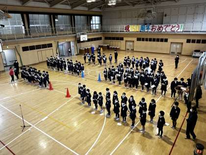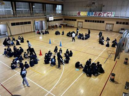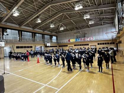 今日の集会で、在校生から6年生へメッセージと歌のプレゼントの練習を行いました。