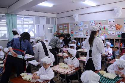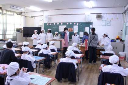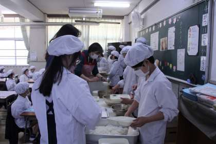 食べ始める前から「おかわりないの?」と食欲旺盛な様子に、6年生もにっこりです。