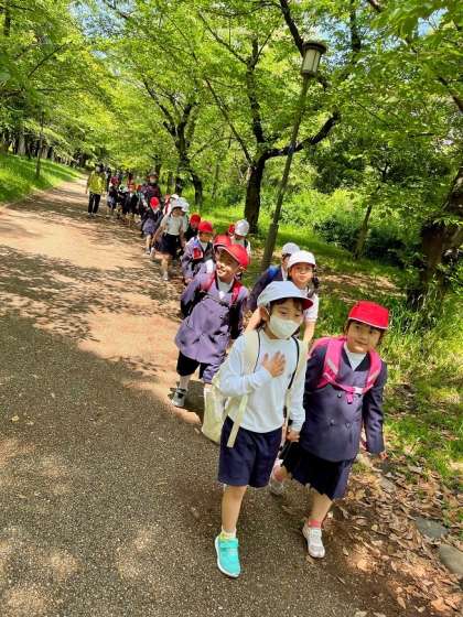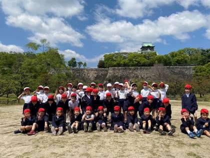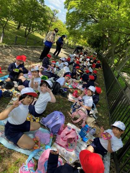 昨日まで雨でしたが晴天に恵まれ、1・2年生で大阪城公園に行ってきました。