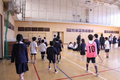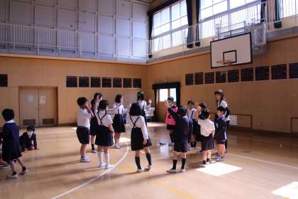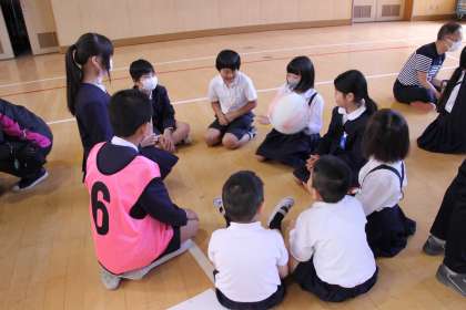 「たてわり班のメンバーがもっとなかよくなれたらいいな。」と、班ごとに遊びを決め活動する「フレンドタイム」を集会の時間に設けています。