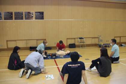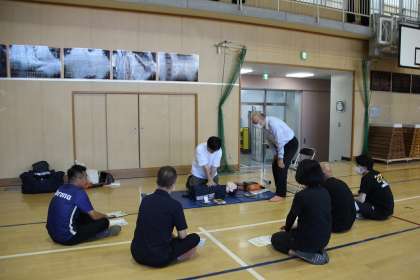毎年、この時期に教職員は講習を受けて、一次救命処置について学んでいます。