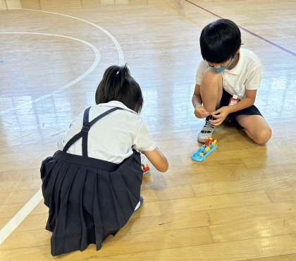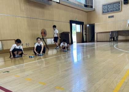 今日は、学習したことを生かしてモーターカーをもっと速く走らせるにはどうしたらいいのか、プロペラをもっと飛ばすにはどうしたらいいのか自分で考えながら実験をしました。