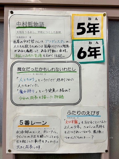 夏休みの後には読書感想文コンクールへの応募もできます。課題図書はそれぞれの教室にあります。