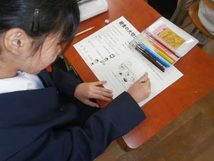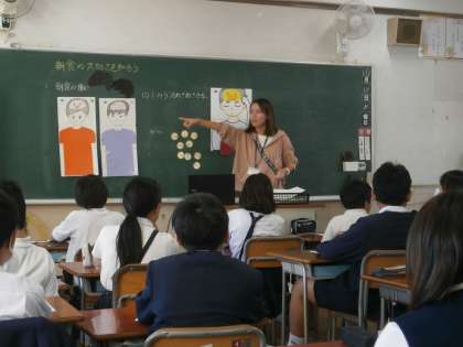 3時間目に中央小学校の栄養教諭の先生に来ていただいて、「朝食の大切さをしろう」の学習をしました。
