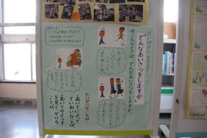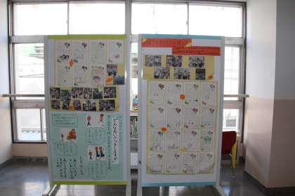 2階には1年生の道徳の学習の振り返りと、オリエンテーリングの感想が掲示されていました。