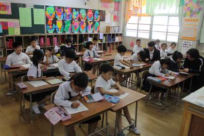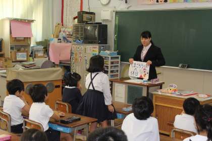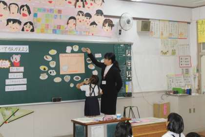平成27年10月19日(月)、2年生で教育実習生による研究授業がありました。児童は、本校卒業生から食教育についていろんなことを教えていただきました。「朝ごはんについて考えよう」というめあてでしたが、熱心に学習することができました。