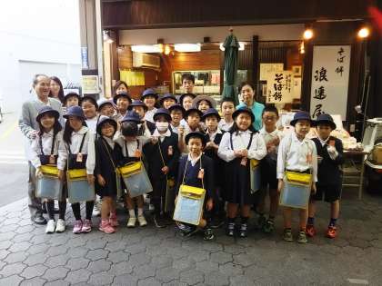 平成27年10月22日(木)、3年生が社会科の学習で黒門市場見学を行いました。まず、黒門市場商店街振興組合理事長・山本善規様からのお話を聴きました。続いて黒門市場内を案内していただき、工夫や特徴、歴史などを詳しく説明していただきました。質問などのお訊ねすることが多く、学習内容を深めることのできた見学となりました。