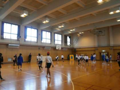 体育科は、みんなが大好きなディスク・ドッジで大盛りあがりです。中学生とも対戦し、和気あいあいと活動しました。