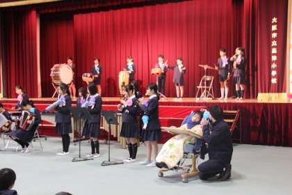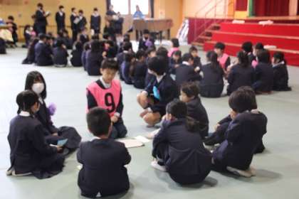 各学年からお祝いの発表をプレゼントしたり、集会委員による「6年生クイズ」をたてわり班で楽しんだりしました。最後の6年生による『情熱大陸』の演奏では手拍子が会場いっぱいに広がり、大盛り上がり。お祝いの気持ちのあふれる温かい会となりました。