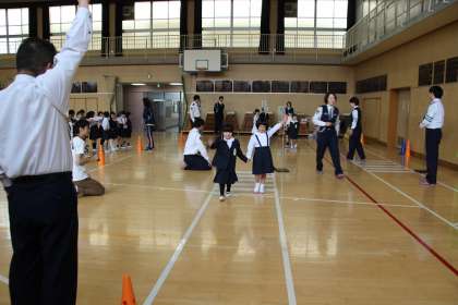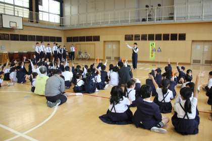 南警察のみなさんに来ていただき、低学年は道路の歩き方を学習しました。
