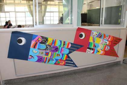 1年生の教室では、大きなこいのぼりが泳いでいます。一人ひとりがデザインした鱗がとても素敵です。