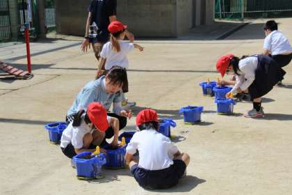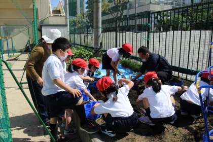 1年生、生活科の学習です。今日は、あさがおのたねをまきました。植木鉢に土をいれて、たねをまいて、しっかり水をあげました。「月曜日には芽が出ているかな?」と話す子どもたちの目は、きらきら輝いていました。これから大切に育てていきたいと思います。