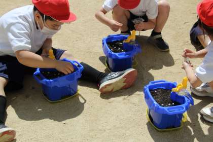 5月10日(金)1年生 あさがおのたねをまいたよ