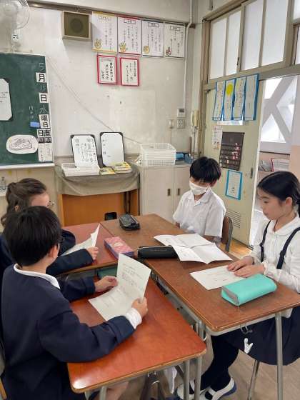 国語科「知りたいことを聞き出そう」で、インタビューをして話を聞き出す学習を行いました。インタビューをしたのは、6年生です。委員会活動で聞きたいことをまとめて、インタビューをしました。6年生を前に緊張をしている様子でしたが、聞きたかったことをみんな聞くことができました。インタビュー後の感想で、6年生が最後まで真剣に答えてくれたり優しくうなずきながら聞いてくれたりしたことが嬉しかったと話をしていました。