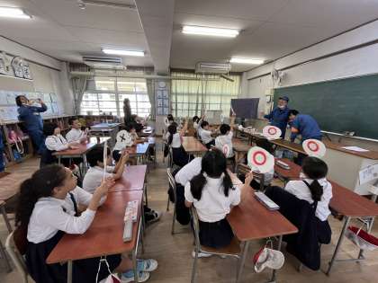 教室では、リサイクルについてのクイズ大会で学習をしました。