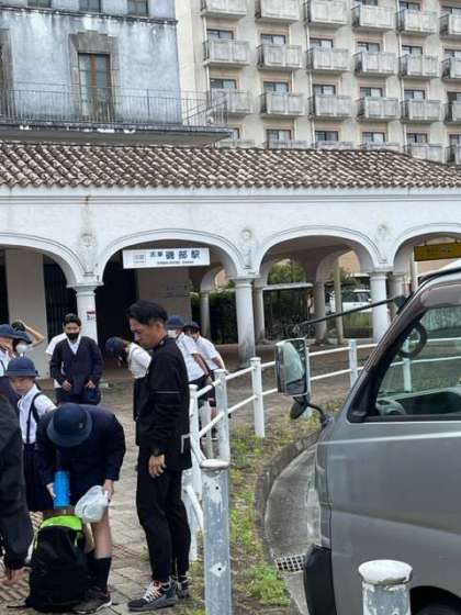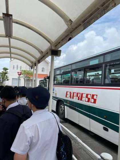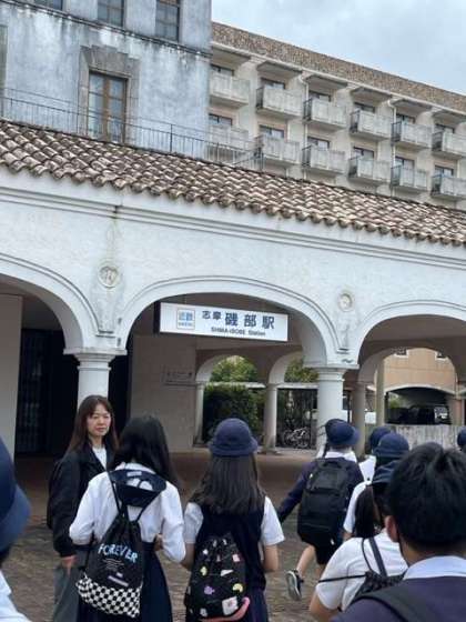 予定通りに志摩磯部に到着。大きい荷物を宿舎の人に預けて、シャトルバスでスペイン村に移動します。
