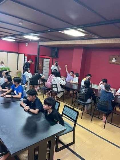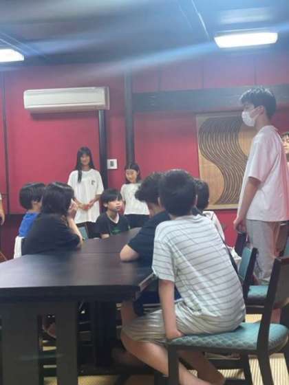 今日一日の班で反省を話し合い、明日の目標を発表し合いました。