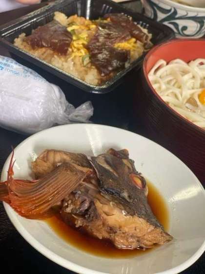 最後の食事は、伊勢うどん、てごね寿司、そして朝釣り上げた魚の煮付けなどです。