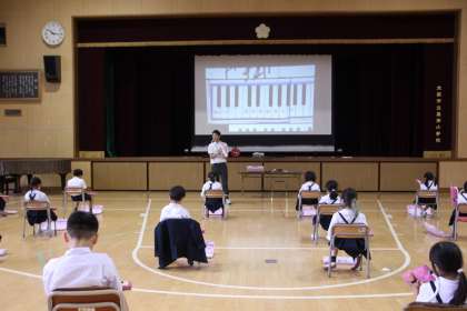 おうちの方にも参加いただいて「じゃんけん列車」をしたり、鍵盤ハーモニカをひいたりしながら、楽しんで学習することができました。