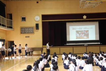 今日の集会は委員会発表でした。発表したのは放送委員会のみなさんです。
