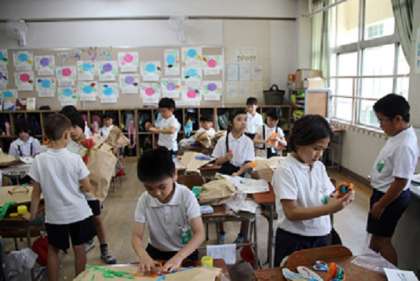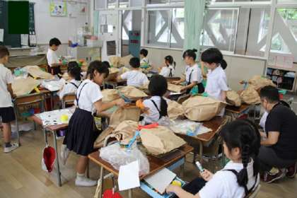 クラフト紙やモール、お花紙などを使って、思い思いに作っています。