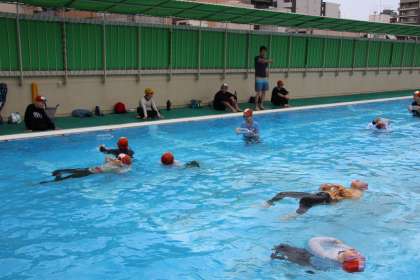 ペットボトルを使った浮き方や、鳥がアイドリングをするときに使っているフィニングという方法について学習しました。楽に長時間浮かぶことがポイントになります。