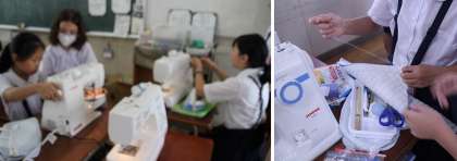 みんなで揃って林間学習に持っていくぞ!と、ミシンと格闘しながら頑張っています。
