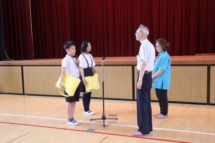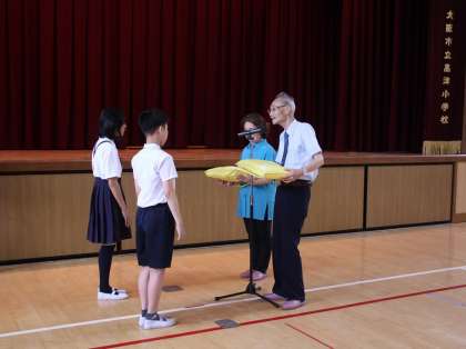 全校を代表して、運営委員の児童2名が受け取りました。