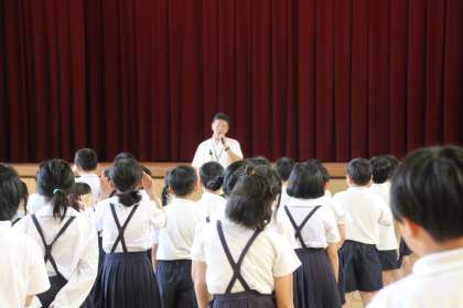 校長先生からは「夏季休業中に守ってほしい『かきくけこ』」についてお話がありました。