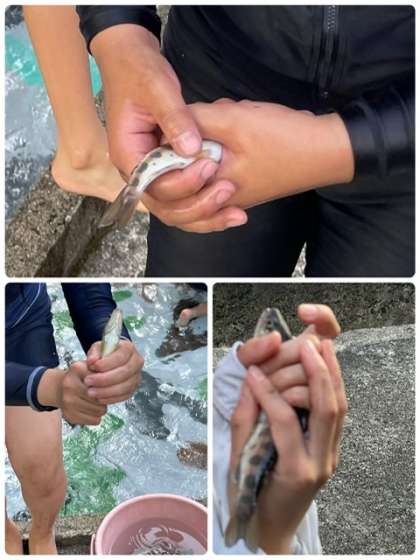 はじめは、なかなか魚に近づくこともできませんでしたが、だんだんうまくつかまえることができるようになってきました。