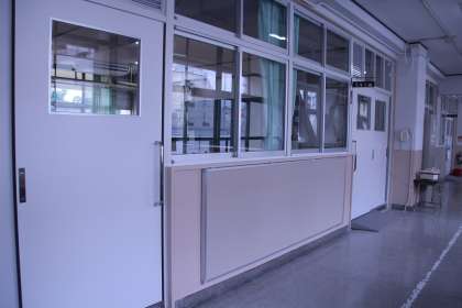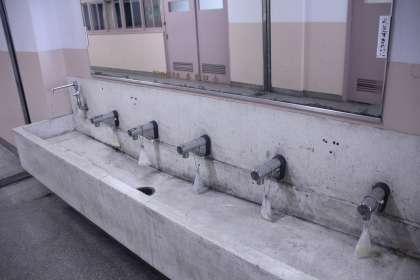 4階の教室扉が新しくなりました。手洗い場も自動水栓に替わっています。