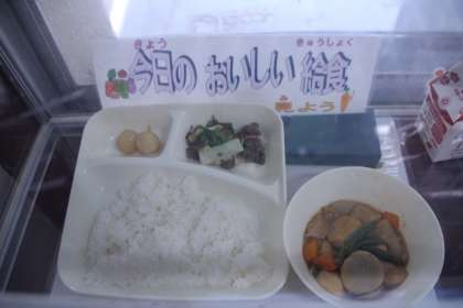 今日の給食には、子どもたちの大好きなみたらし団子がでました。