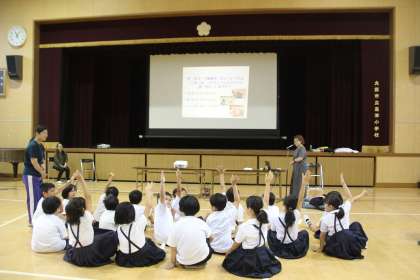 子どもたちは、真剣な眼差しでお話を聞いています。