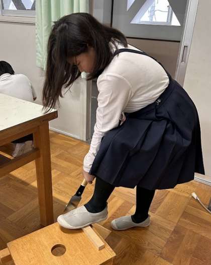 教えていただいたとおり、上手に切ることができました。片付けも力を合わせてあっという間に終わりました。ひみつのすみかの完成が楽しみです。