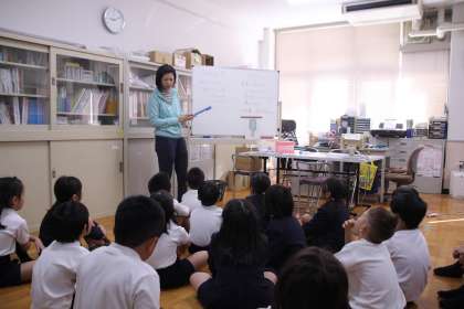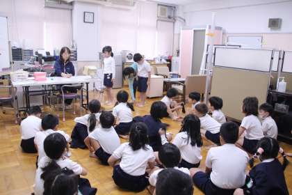 はじめに、歯磨きの仕方と歯ブラシチェックの仕方を教えてもらいました。