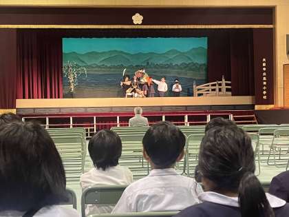 学習発表会にむけて、3年生は6年生の子ども文楽の見学を行いました。素晴らしい発表に3年生はびっくりしていました。