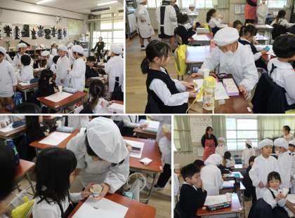 「大きいやつにしよ。」「きれいな形のやつをあげたい。」と言いながら、心を込めて絵付けした紙コップに入れて、届けました。