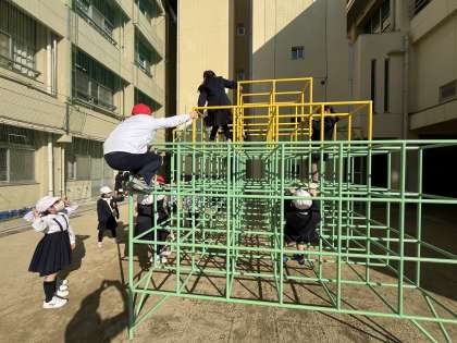 休み時間にはジャングルジムで楽しんでいました。