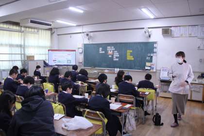 学校歯科医と歯科衛生士によるフッ化物洗口、むし歯予防の授業がありました。。