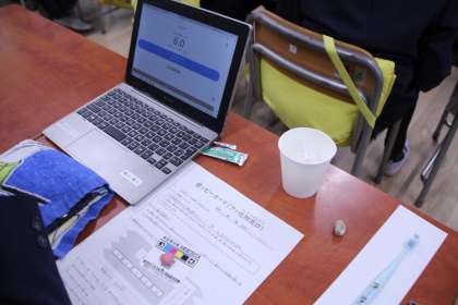 むし歯予防にはフッ化物以外に、歯みがき、よく噛んで唾液を出すことも大切です。ふだん、しっかり噛めているか、咀嚼チェックガムで調べました。