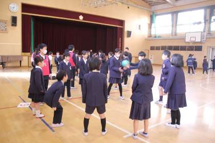 音楽に合わせてボールを回していく「ばくだんゲーム」をしました。