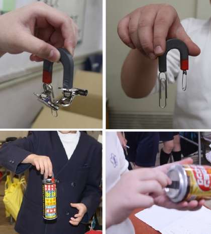 でも、あれれ?空き缶には、くっつくものと、くっつかないものがあるようです。