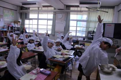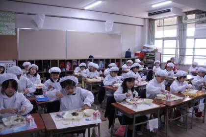 1月の給食には、お正月にちなんだメニューが4回登場します。今日は、雑煮とごまめが出ました。