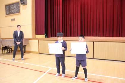 2名の児童の表彰がありました。入賞作品は、来年のカレンダーに掲載されています。